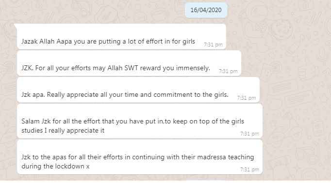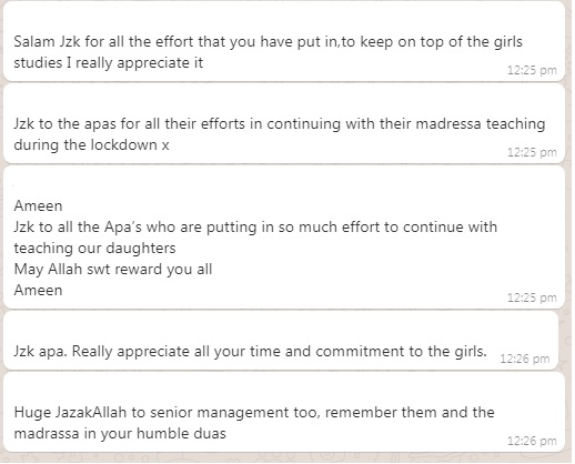 These are some of the messages we received from parents regarding our online classes we set up, during COVID-19.